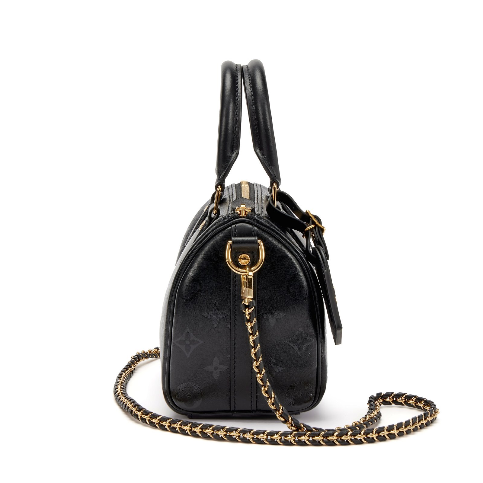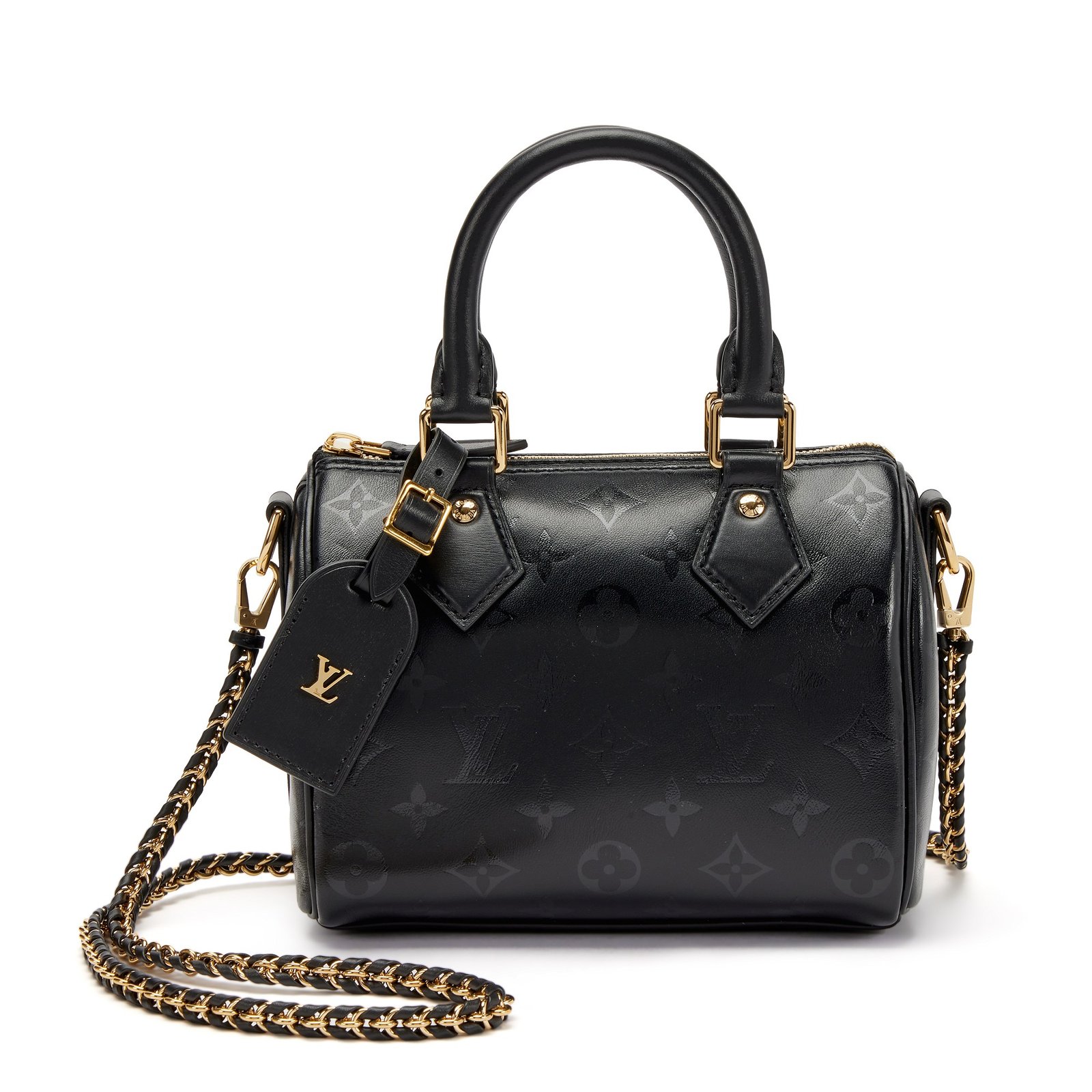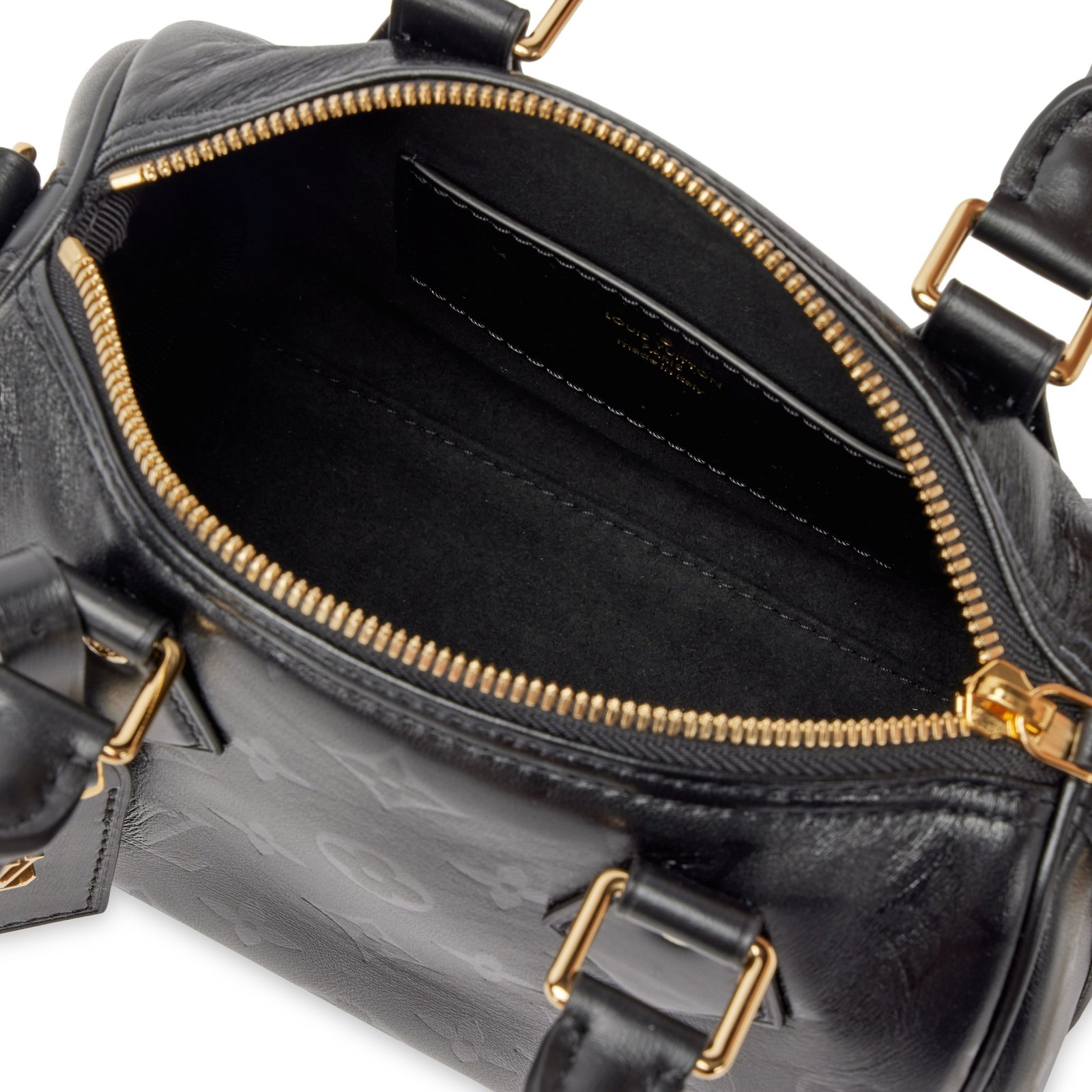 Louis Vuitton Black Monogram Ink Lambskin Speedy BB Gold Hardware, 2020This bag is lined with a tonal alcantra materialIncludes luggage tag, strap, dustbag, and boxThis item is final sale and not eligible for return