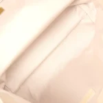 The interior is lined in beige cotton and leather with no interior pockets.