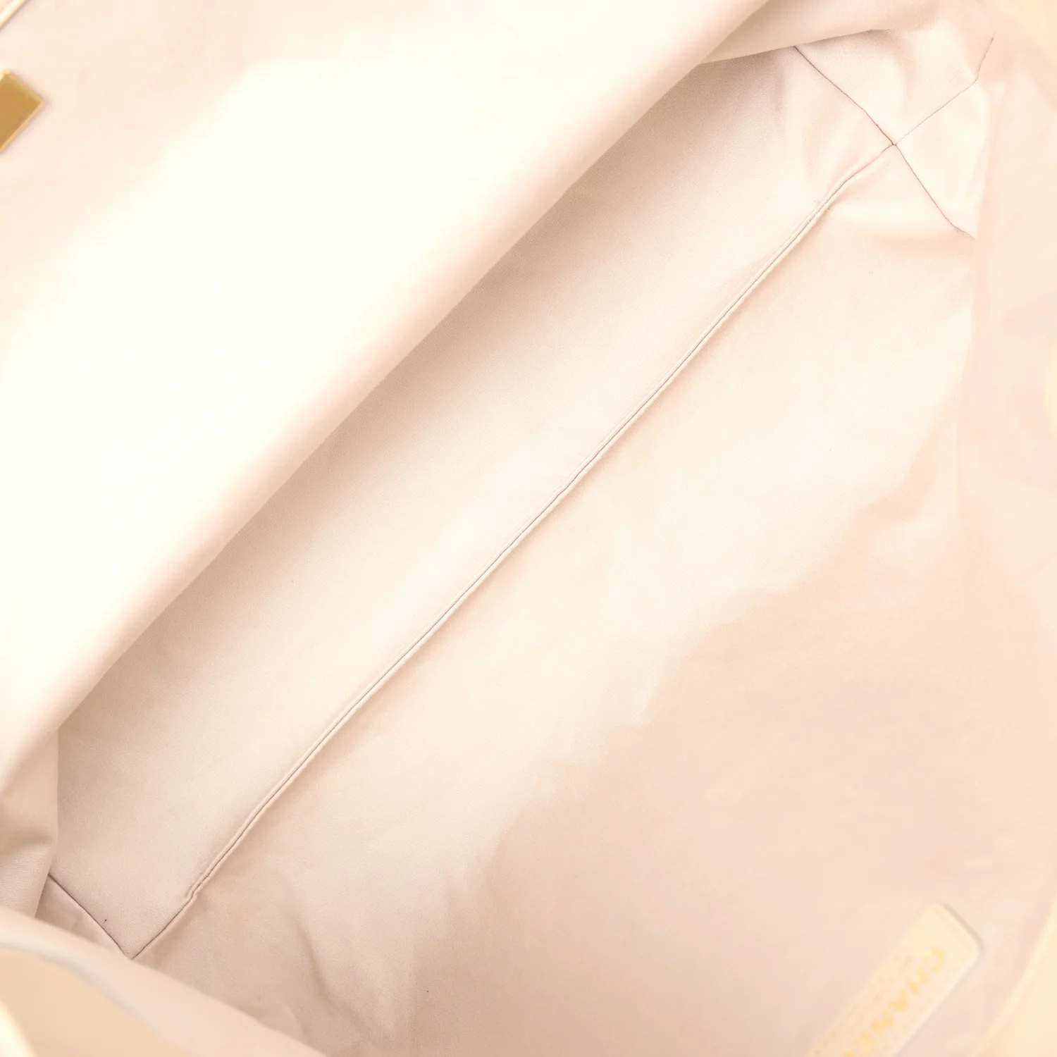 Chanel Mini 22 Ecru Shearling Bag for sale. The interior is lined in ecru fabric and has one pocket on rear wall