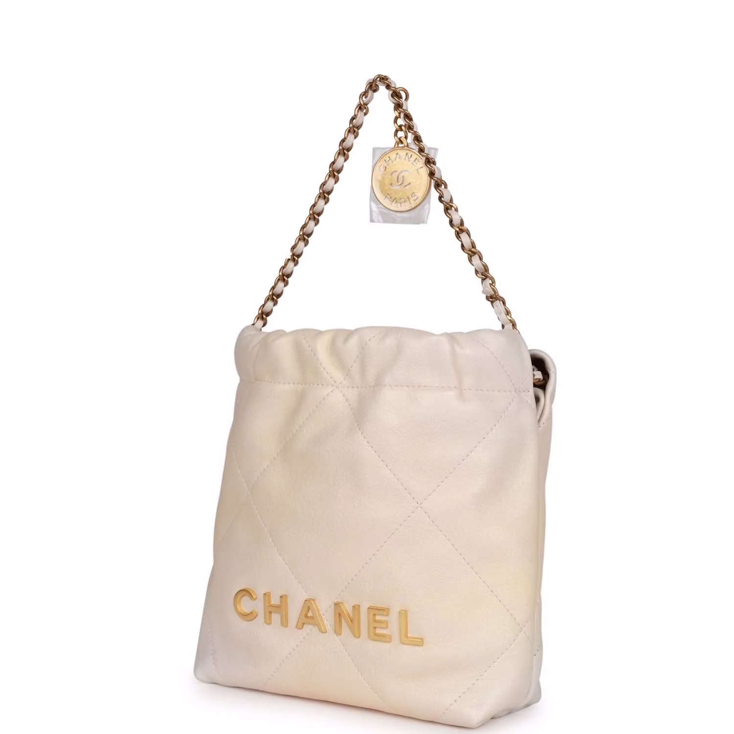 Chanel Mini 22 Bag Champagne Iridescent Calfskin Gold Hardware
