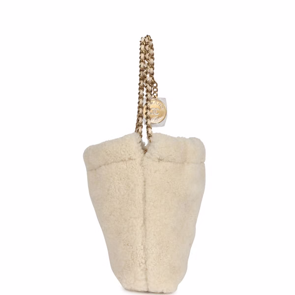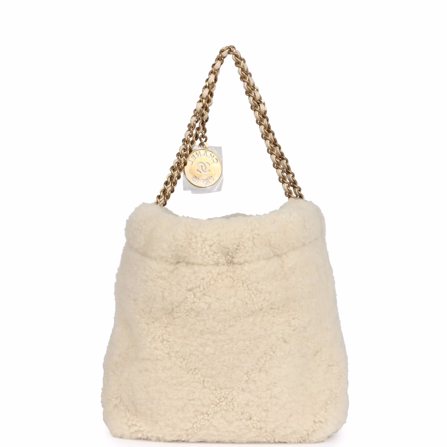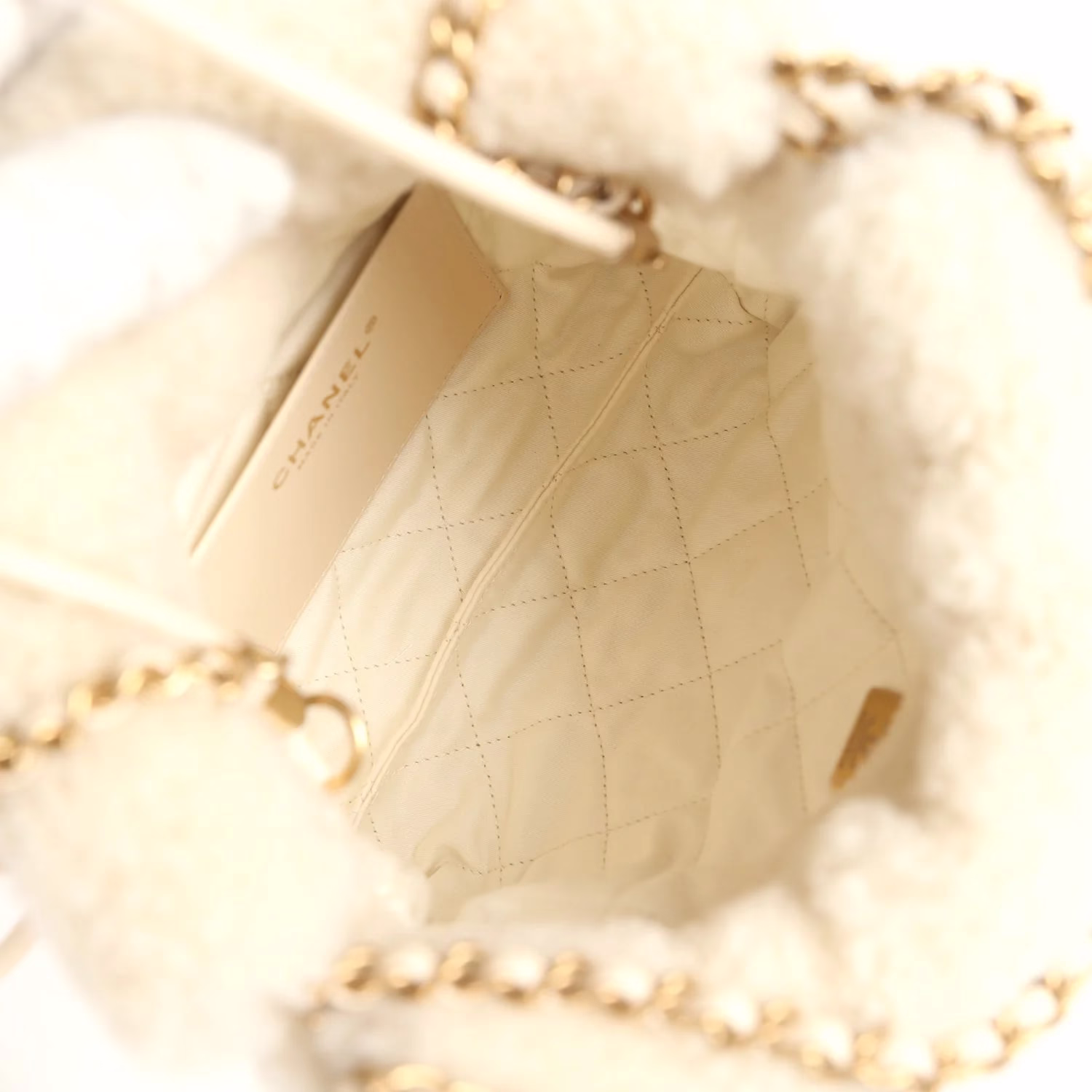 Chanel Mini 22 Bag Ecru Shearling Gold Hardware