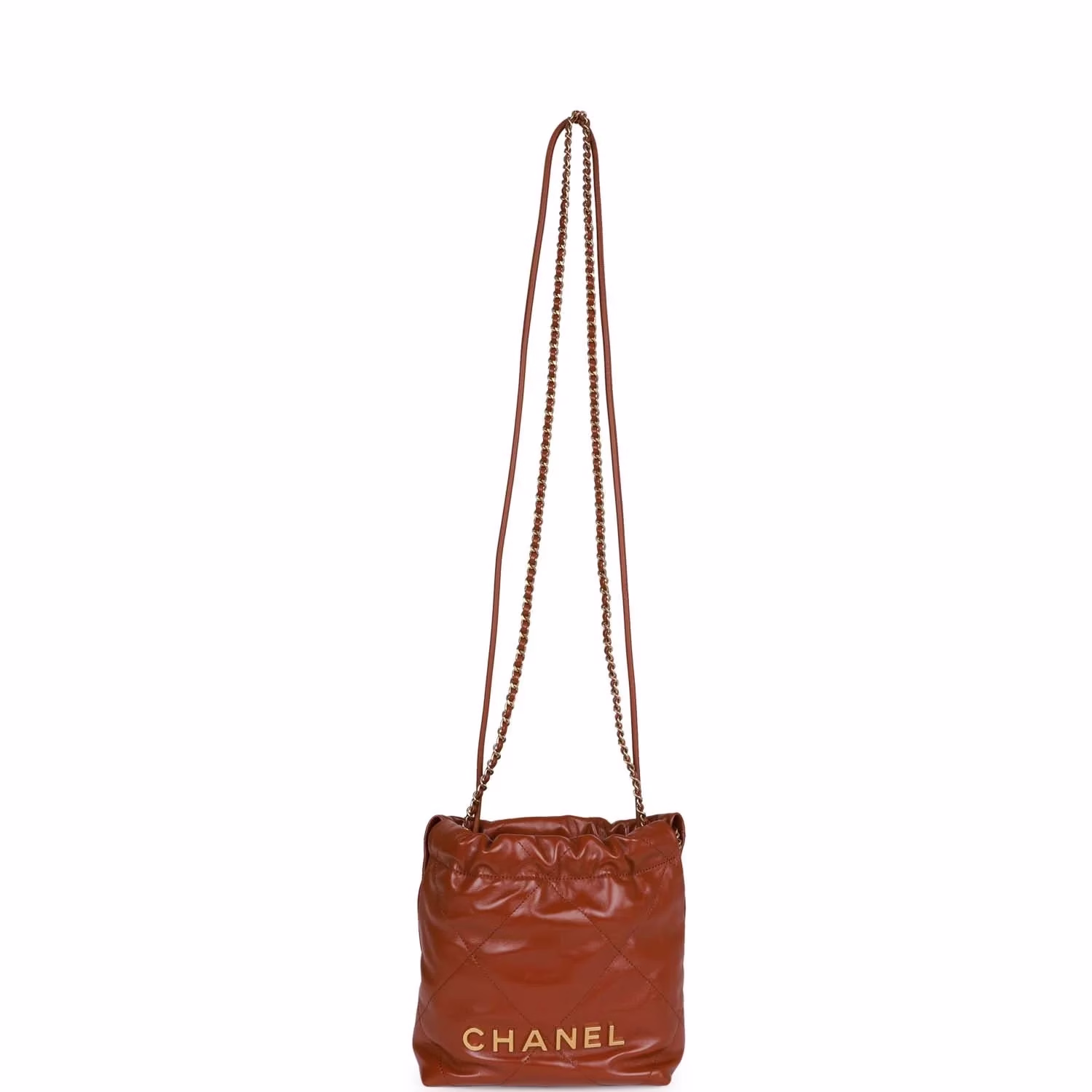 Home Chanel Handbags Chanel 22 Bags Chanel Mini 22 Brown Calfskin Bag for sale