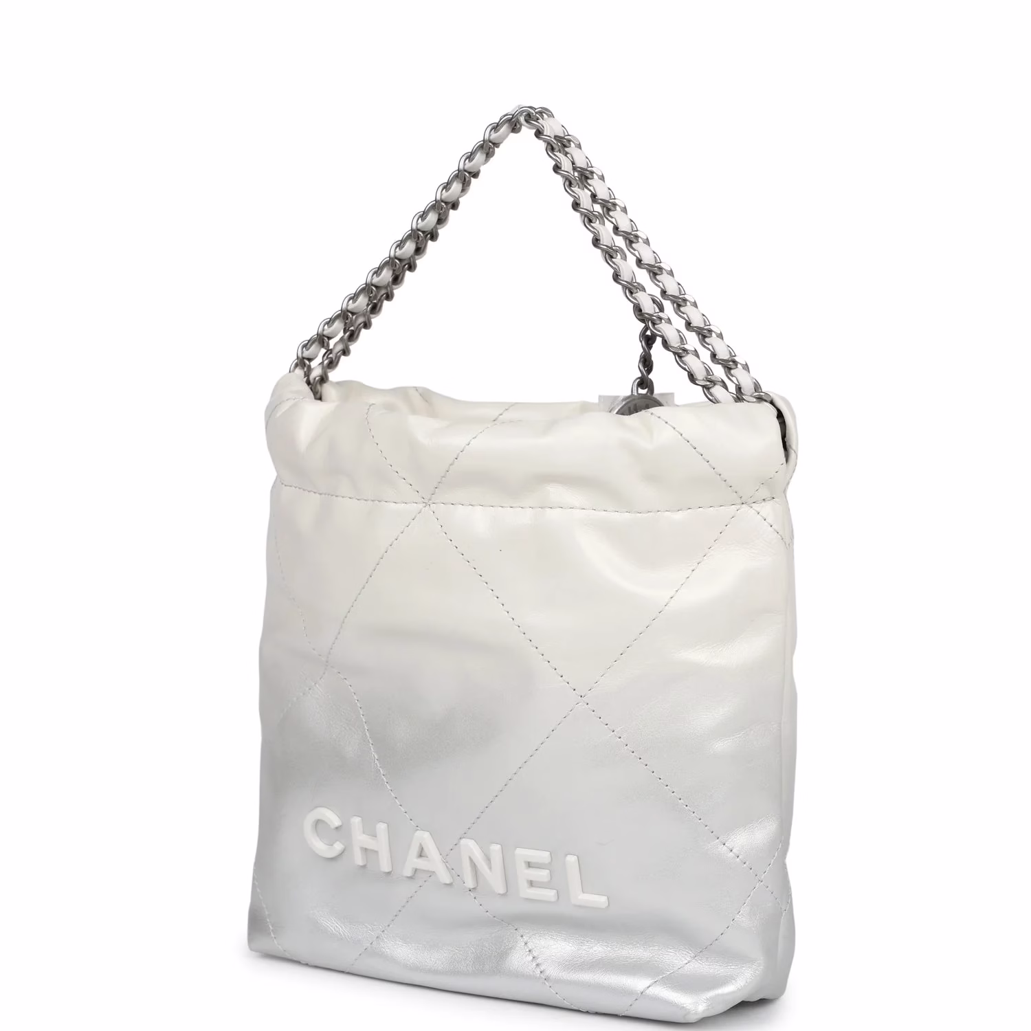 Chanel Mini 22 bag for sale, white Chanel bag for sale, silver Chanel purse for sale, ombre Chanel handbag for sale, Chanel calfskin bag for sale, Chanel silver hardware bag for sale, metallic Chanel bag for sale, luxury Chanel mini bag for sale, rare Chanel 22 bag for sale, designer mini bag for sale