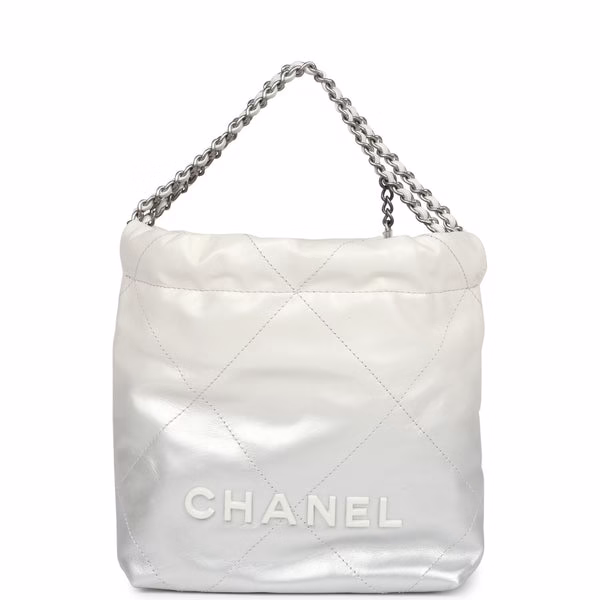 Home Chanel Handbags Chanel 22 Bags Chanel Mini 22 White Silver Bag for sale