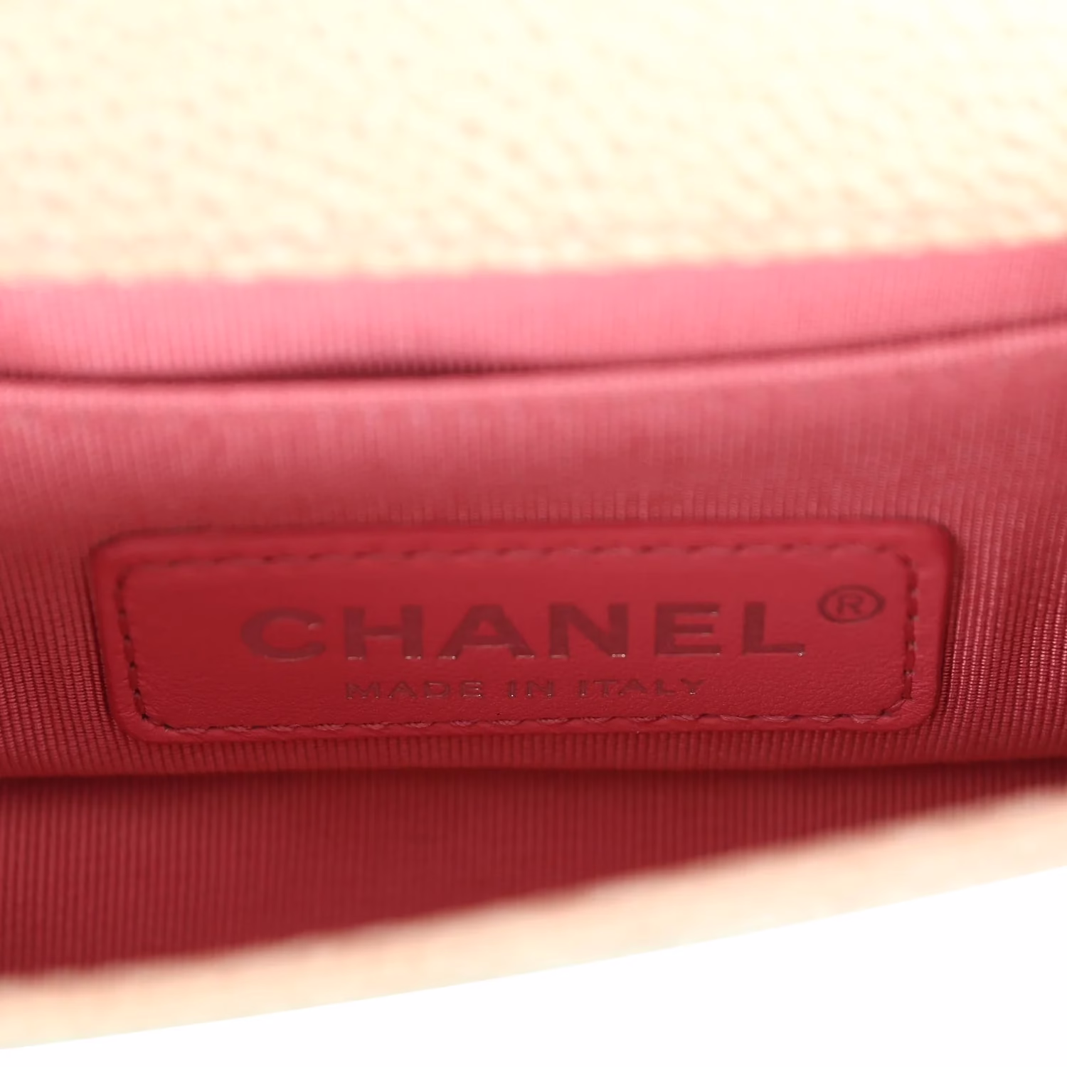 Chanel Mini Paris-Cuba Boy Bag for sale. The interior is lined in pink grossgrain fabric and has one slit pocket on rear wall