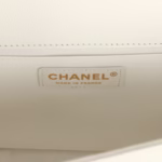 Chanel White Boy Bag Medium for sale. The interior is lined in white leather with an open pocket on rear wall