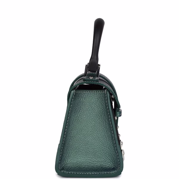 The Goyard Saigon Nano in pearly green Goyardine is a timeless collector’s piece, featuring the brand’s iconic structured silhouette and rich palladium hardware. Crafted in premium coated canvas and natural wood trim, this rare nano size bag brings heritage charm and standout style in a petite, elegant form.