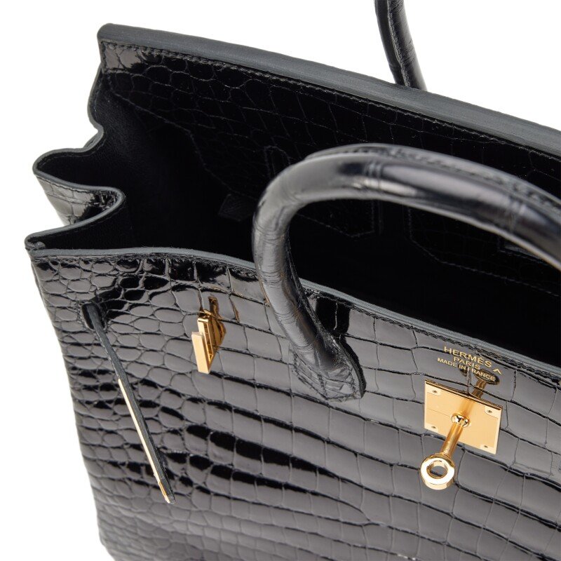 Home Hermès Handbags Birkin Birkin 35CM Hermès Black Shiny Porosus Crocodile Birkin 35 Gold Hardware, 2022