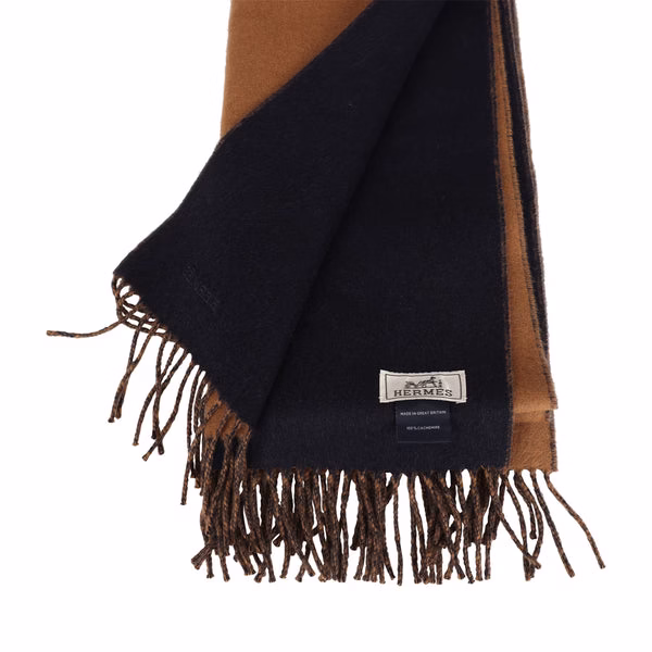 Hermes Double Face Stole Bronze and Marine Cashmere for sale