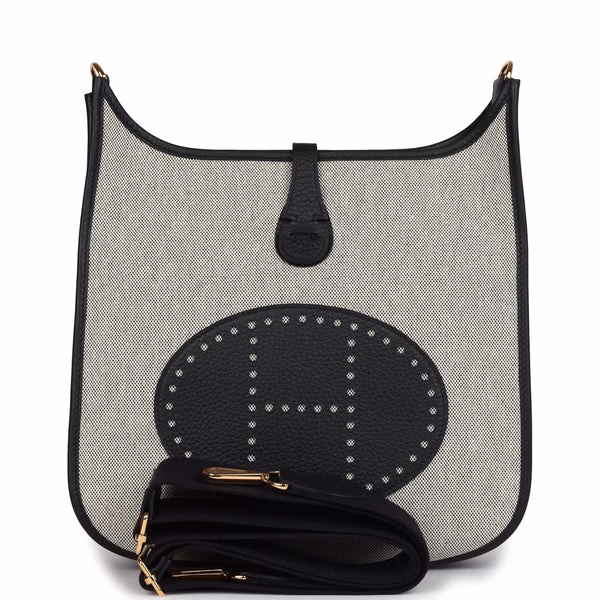 Hermes Evelyne III PM Black Clemence and Ecru Toile Gold Hardware for sale
