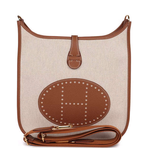 Hermes Evelyne III PM Gold Clemence and Ecru Toile H Canvas Gold Hardware for sale