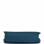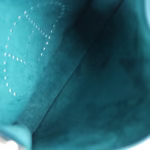 This Evelyne is of Vert Bosphore clemence leather with palladium hardware, featuring tonal stitching, large perforated H in circle (front), pull tab top snap closure and removable Vert Bosphore shoulder/crossbody strap, with exterior back pocket. The interior is lined in natural suede leather.