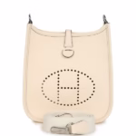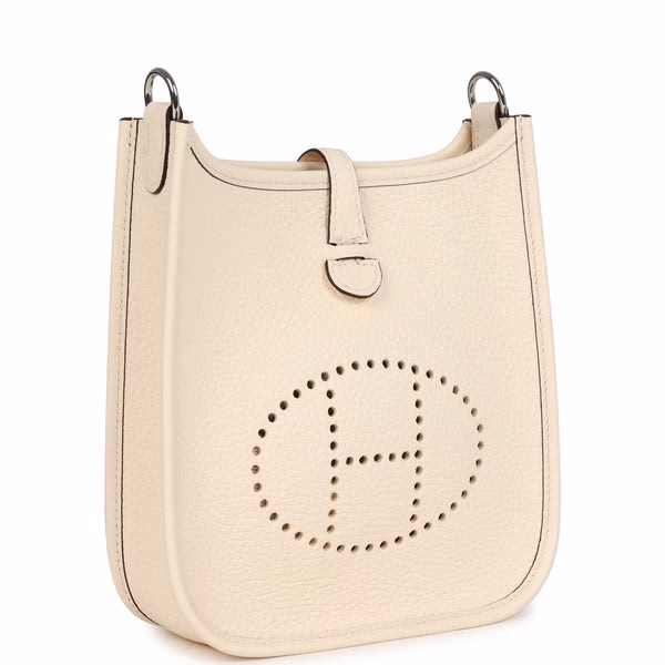 The Hermès Evelyne TPM in elegant Nata Clemence leather with Palladium hardware is the ultimate everyday mini bag