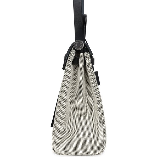Hermes Herbag Zip 31 PM Hobnailed Black and Ecru Printed H Plume Canvas and Vache Hunter Palladium Hardware $3,172.50