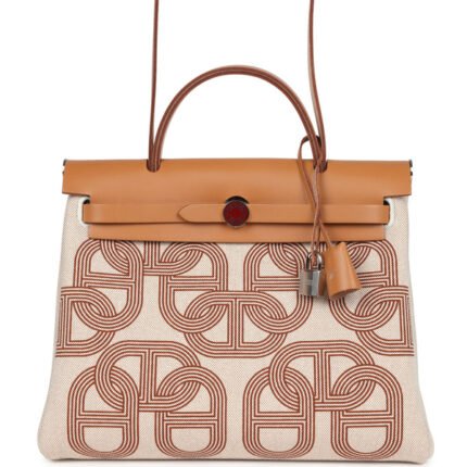 Hermes Herbag Zip PM 31 "Brides de Gala" Natural Sable Berline Hunter and Ecru Toile H Canvas Palladium Hardware $2,982.27