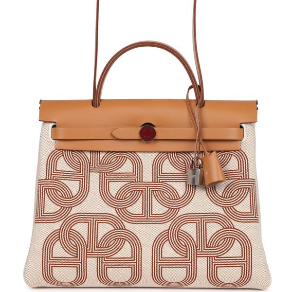 Hermes Herbag Zip PM 31 "Brides de Gala" Natural Sable Berline Hunter and Ecru Toile H Canvas Palladium Hardware $2,982.27