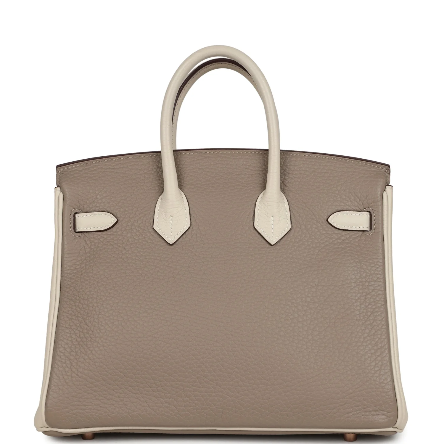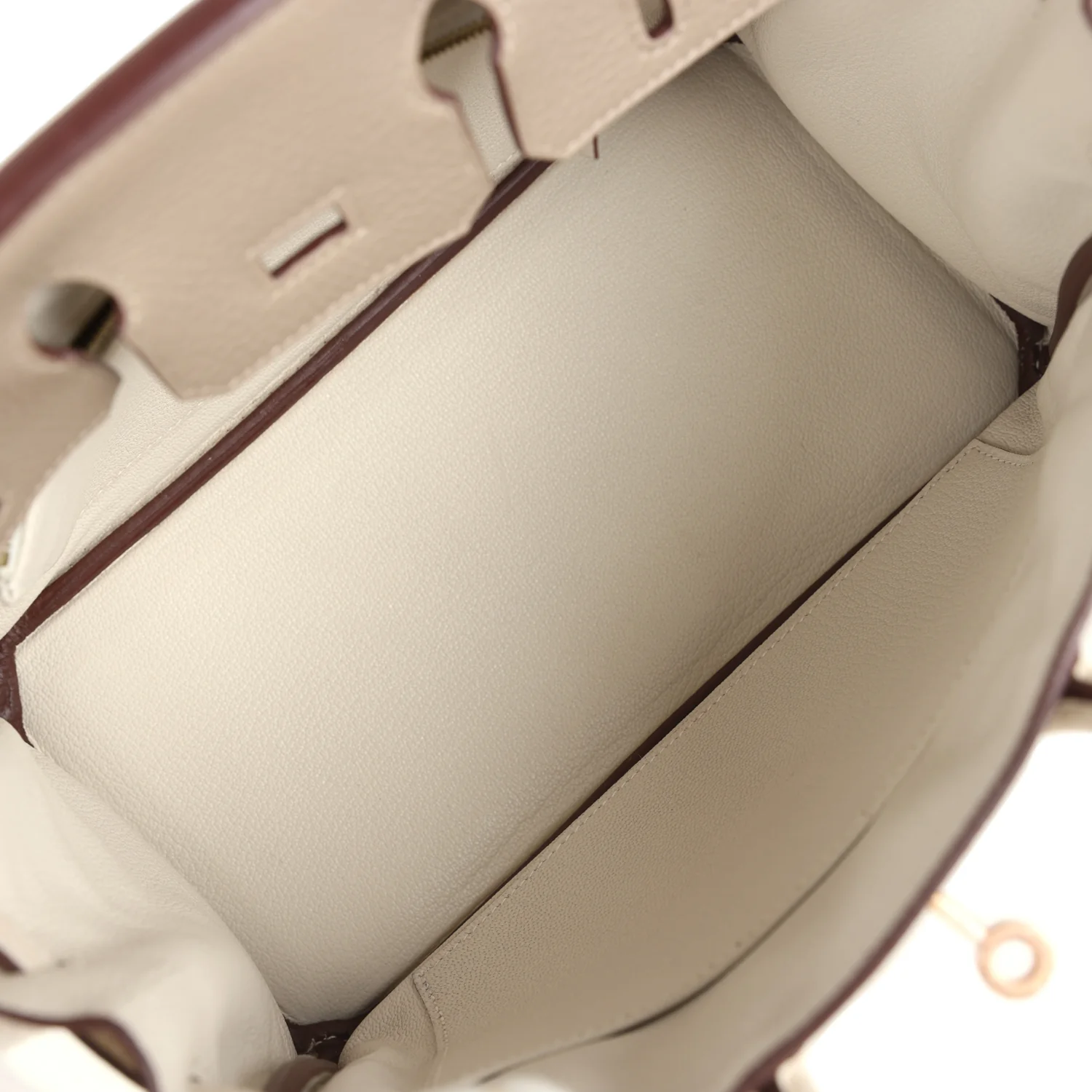 Home Hermès Handbags Horseshoe Stamp Bags Hermès HSS Birkin 25 Gris Tourterelle & Craie Clemence Rose Gold
