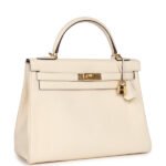 Buy Hermes Kelly Retourne 32 Nata Clemence Gold Hardware. This Hermes Kelly Retourne 32, in the Retourne style, is in Nata clemence leather with gold hardware and has tonal stitching, two straps with front toggle closure, clochette with lock and two keys, single rolled handle and removable shoulder strap.