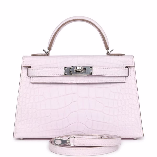 Categories: Hermès Handbags, Kelly Bags Tags: Alligator Hermès bag for sale, Hermès exotic leather bags for sale, Hermes Kelly Bag for sale, Kelly 20 Sellier for sale, luxury designer bags for sale, Mauve Pale Hermès for sale, mini Hermès Kelly for sale, Palladium hardware Hermès for sale, rare Hermès handbag for sale