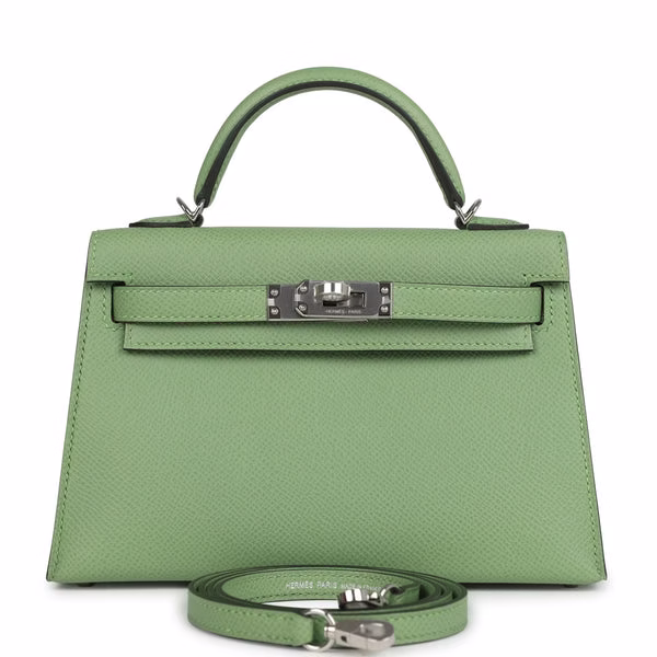 Categories: Hermès Handbags, Kelly Bags Tags: authentic Hermès handbag for sale, Epsom leather Hermès bag for sale, green Hermès Kelly for sale, Hermes Kelly Bag for sale, Hermès Palladium hardware bag for sale, Kelly 20 Vert Criquet for sale, luxury designer bag for sale, mini Kelly Sellier for sale, mini luxury bag for sale, rare Hermès Kelly for sale