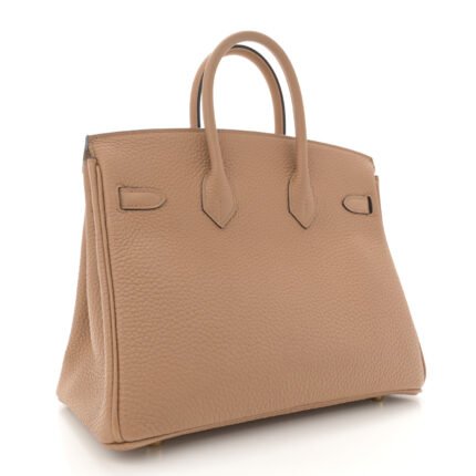 Timeless elegance meets refined craftsmanship in the Hermès Birkin 25 in Chai Togo leather with gold hardware for sale – a rare and coveted icon of luxury.