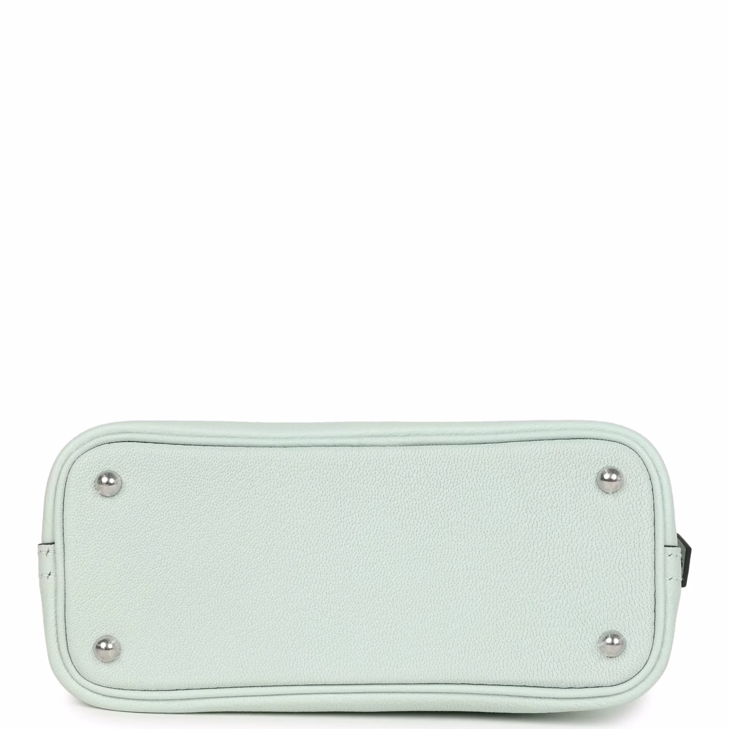 This Hermès Mini Bolide 1923 Bolide is in Vert Peppermint Chevre Mysore leather with palladium hardware, has tonal stitching, a top zipper closure, double rolled handles and a removable shoulder strap.