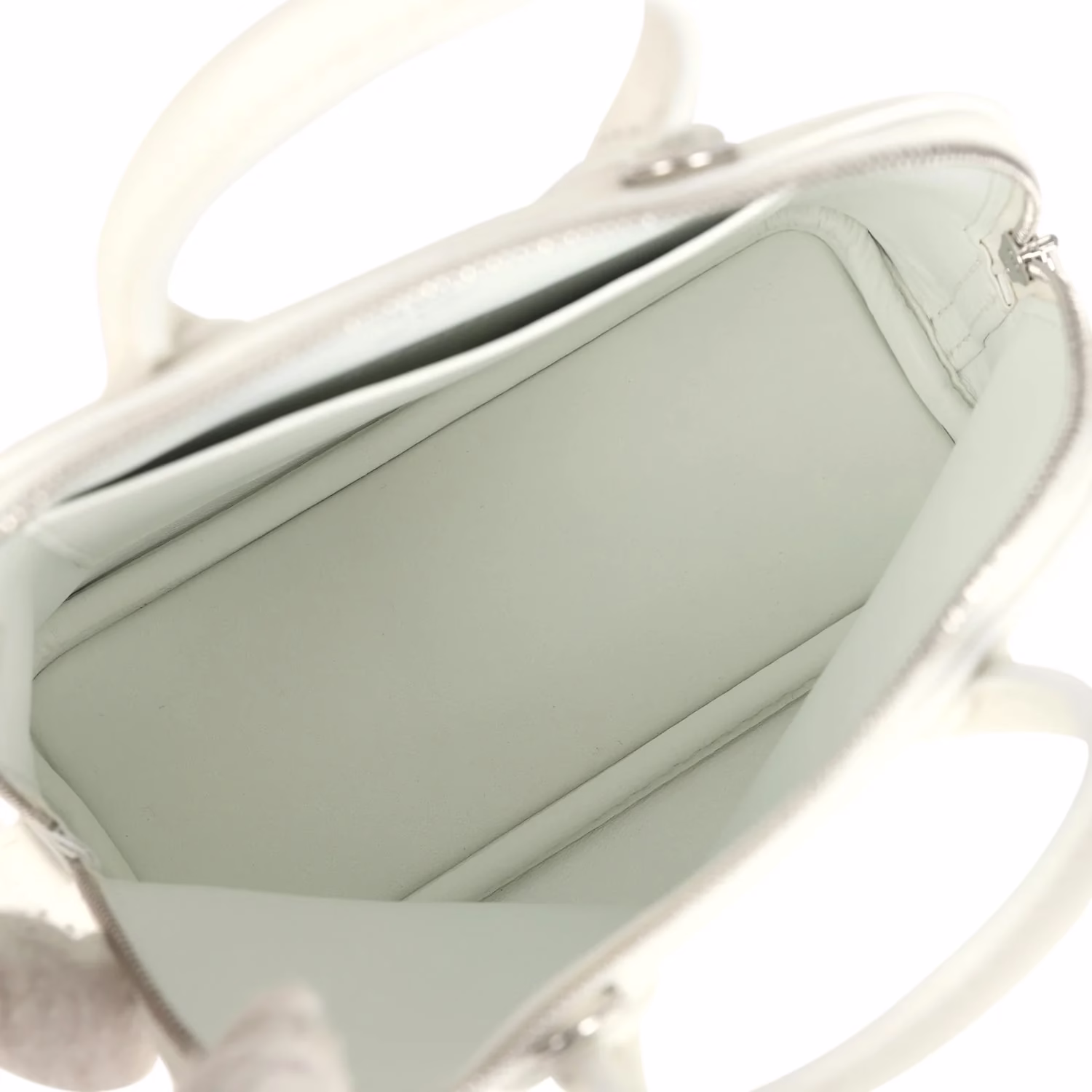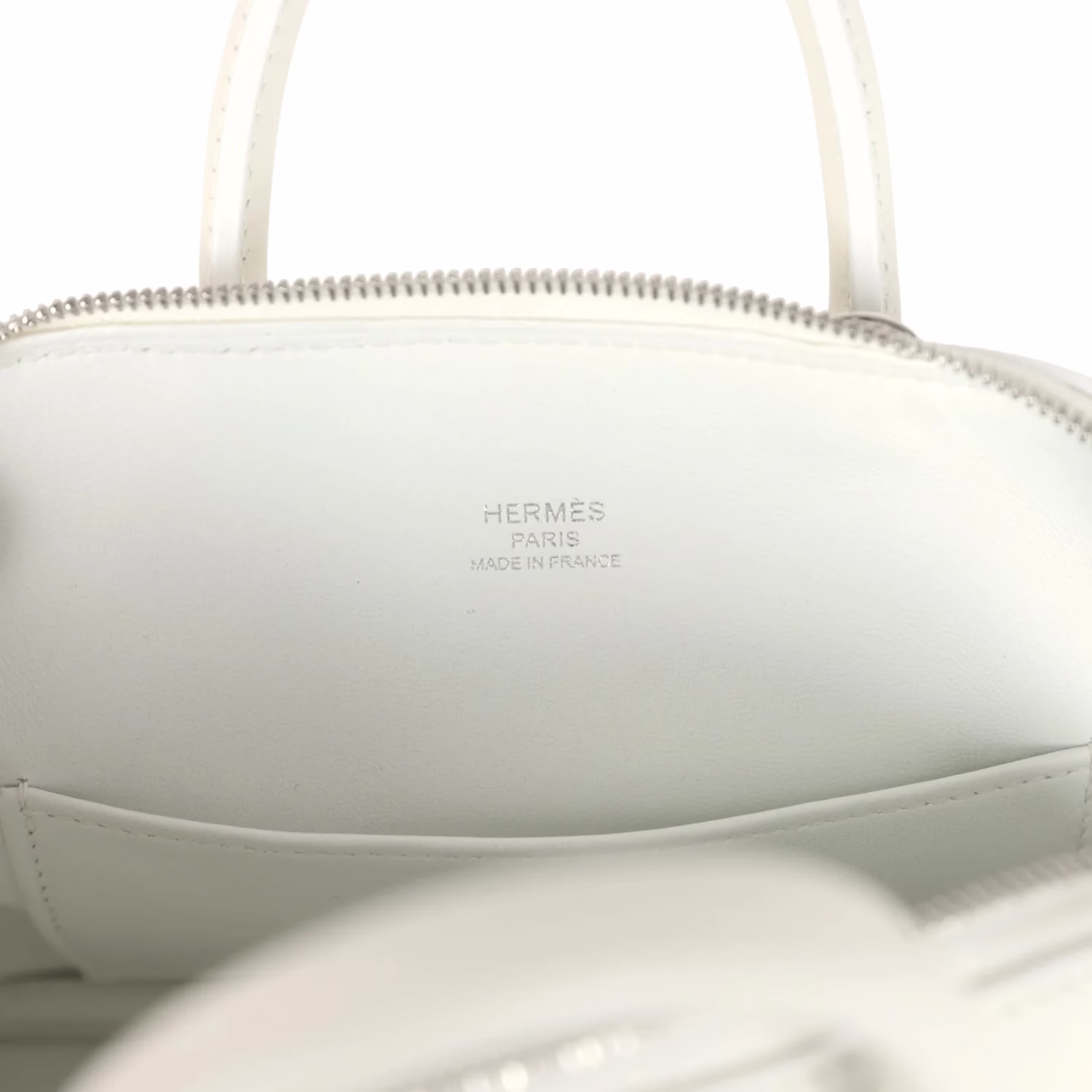 The interior is lined in New White swift leather and has one open pocket on the rear wall.