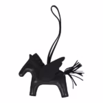 This Pegase Rodeo Bag Charm MM is in So Black Milo Lambskin leather and is accented with So Black mane, tail, eyes, loop holder, and wings.
