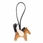 Add a playful yet luxurious touch to your Hermès collection with the Pegase Rodeo PM Bag Charm in Sesame, Black, and Nata