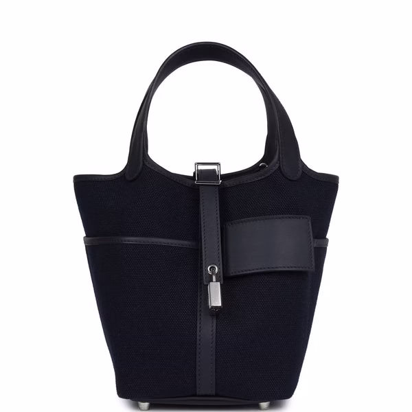 Hermes Picotin Cargo 18 Caban Swift and Black Toile Canvas Palladium Hardware for sale