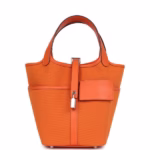 Hermes Picotin Cargo 18 Orange Swift and Toile Canvas Palladium Hardware