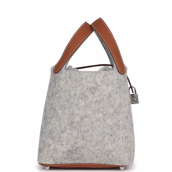 Hermes Picotin Lock 18 Gris Clair Feutre and Gold Swift Palladium Hardware for sale