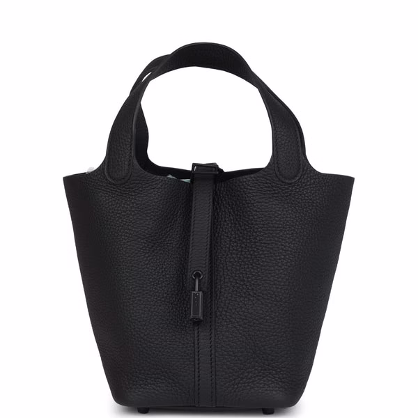 Hermes Picotin Lock 18 Monochrome Black Clemence Black Hardware for sale
