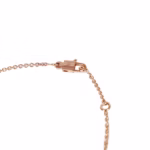 This Necklace is in 18k rose gold and set with 18 diamonds totaling .012 carats with a lobster clasp closure.