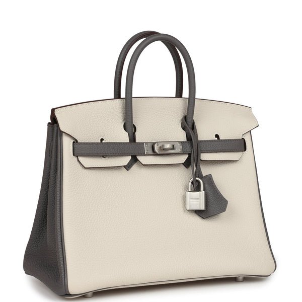 Home Hermès Handbags Horseshoe Stamp Bags Hermes Special Order (HSS) Birkin 25 Beton and Etain Togo Brushed Palladium Hardware