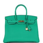 Home Hermès Handbags Horseshoe Stamp Bags Hermes Special Order (HSS) Birkin 35 Menthe Verso Togo Gold Hardware