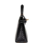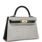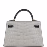 Home Hermès Handbags Kelly Bags Hermes Special Order (HSS) Kelly Sellier 20 Gris Perle and Black Matte Alligator Gold Hardware
