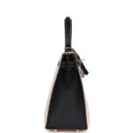 Hermes Special Order (HSS) Kelly Sellier 25 Nata and Black Chevre Mysore Brushed Palladium Hardware
