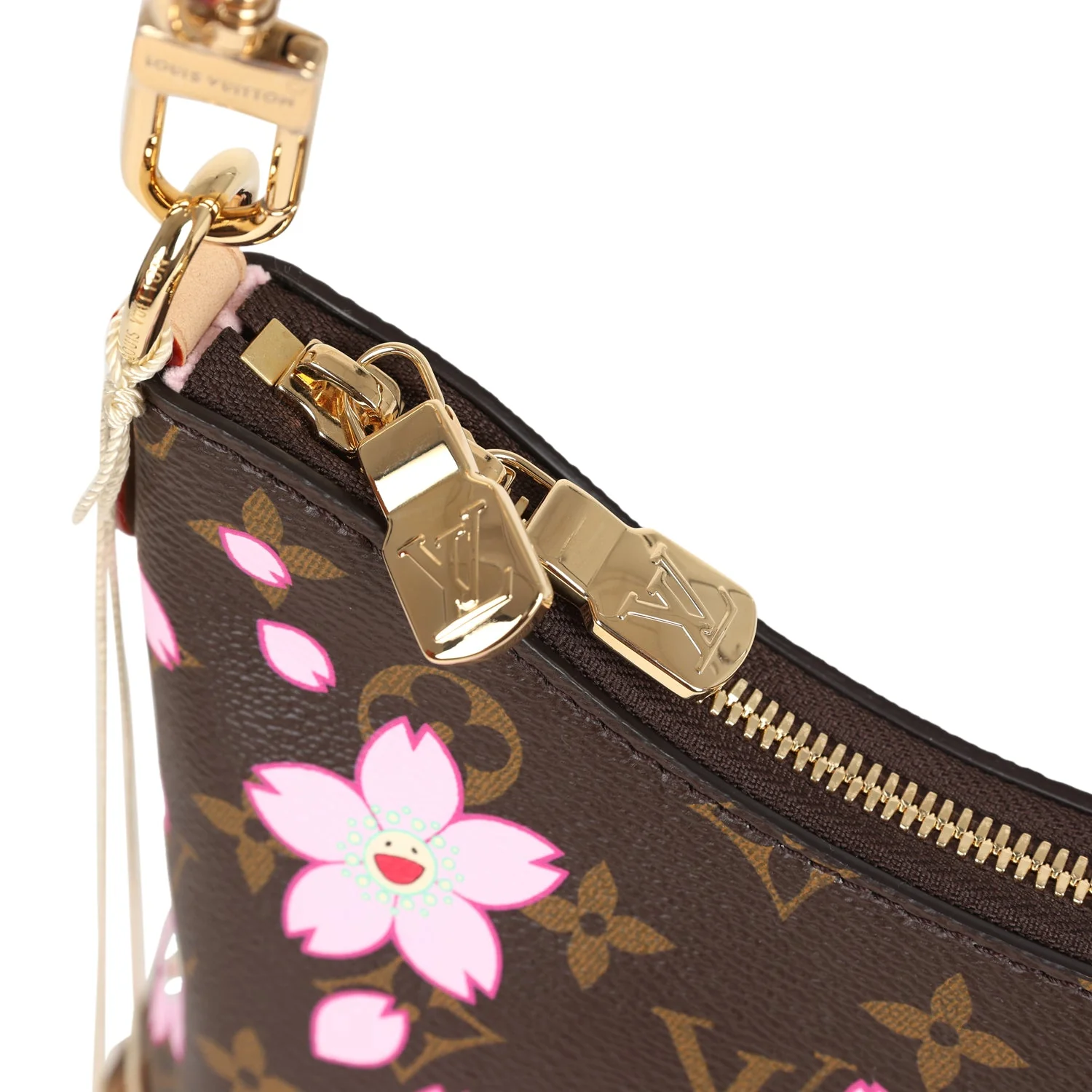 Limited edition Louis Vuitton shoulder bag designed by Takashi Murakami, featuring pink cherry blossoms on Monogram canvas with gold hardware for sale. A coveted collector’s piece in excellent condition