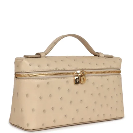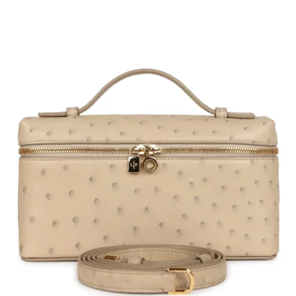 Loro Piana L19 Beige Ostrich Pouch – Gold Hardware