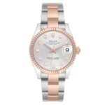 This authentic Rolex Datejust Ref. 278271 is a striking 31mm automatic wristwatch featuring a two-tone rose gold and stainless steel case and bracelet. The elegant silver dial is accented with diamond-set hour markers and a date display at 3 o’clock. Its screw-down case back, deployant clasp, and durable construction make it both refined and functional. This watch is in very good pre-owned condition with only minor signs of wear and comes complete with its original box.