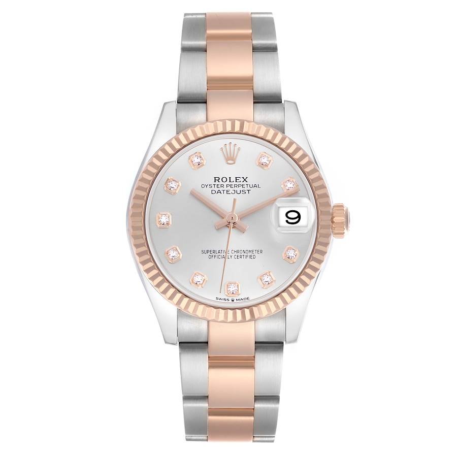 Rolex Datejust 278271 in 31mm two-tone rose gold and stainless steel with diamond dial. Automatic movement with date complication. Includes original Rolex box. Ideal for collectors and luxury watch enthusiasts