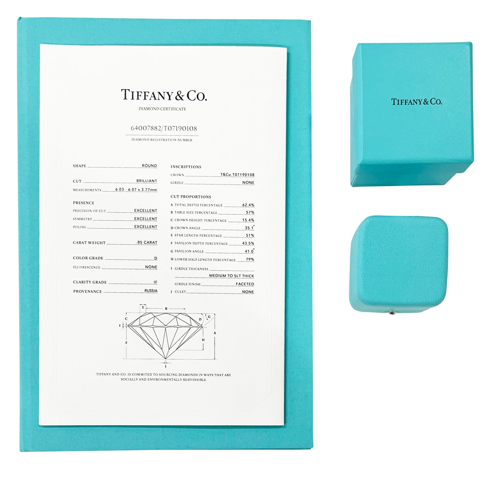 • Packaging: Original Tiffany Box + Diamond Certificate
