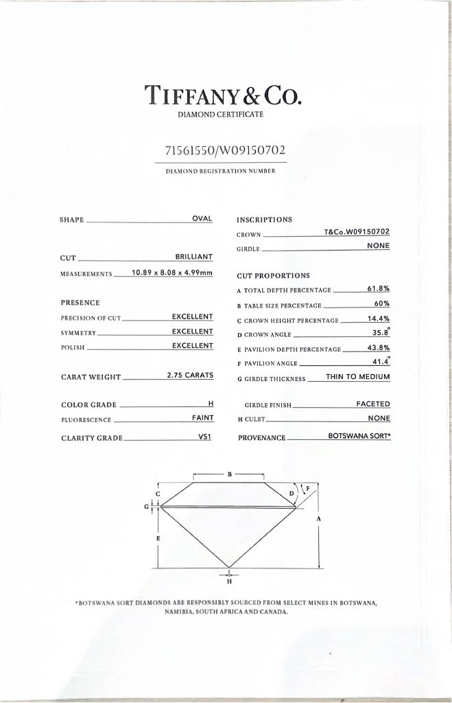 Categories: Jewelry, Tiffany Jewelry Tags: authentic tiffany ring for sale, bridal ring for sale, diamond cocktail ring for sale, luxury engagement ring for sale, oval cut diamond ring for sale, platinum engagement ring for sale, signed tiffany jewelry for sale, tiffany diamond ring for sale, VS1 diamond ring for sale, women's platinum ring for sale