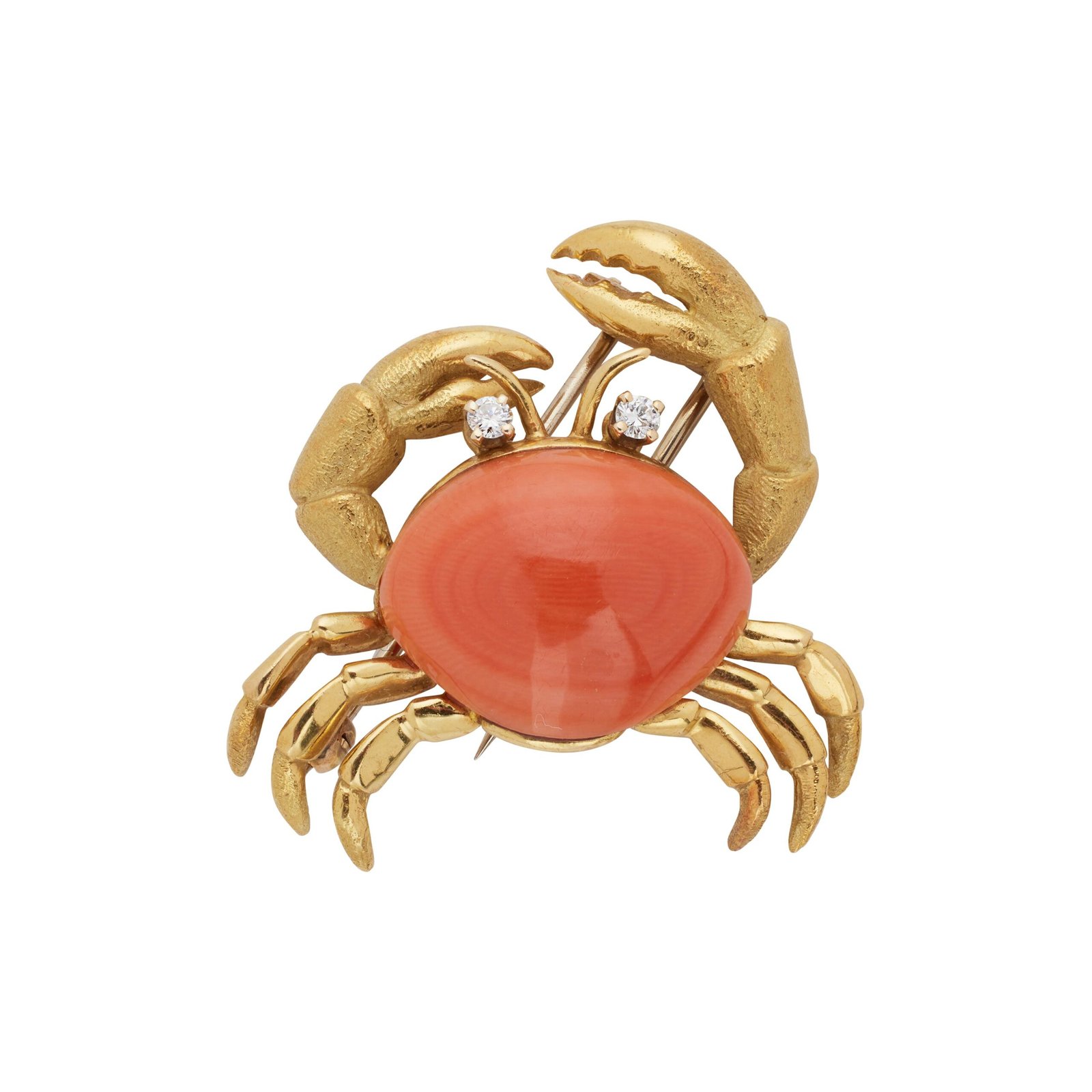 Home Jewelry Tiffany Jewelry Tiffany Coral Diamond Crab Brooch, 18K Gold, for Sale
