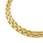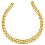 Signed Tiffany & Co. collar necklace in 18k yellow gold, circa 1992. Features approx. 3.75 ct F-G color VS1-VS2 clarity diamonds. 16″ long, 142.37g. Elegant and collectible vintage piece