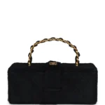 Step into timeless elegance with this Vintage Chanel Black Pony Hair Vanity Box with iconic antique gold hardware. This rare collectible piece blends classic Chanel sophistication with bold vintage charm. Featuring a structured rectangular silhouette, top handle, and secure zip closure, it’s the perfect blend of fashion and function for your curated luxury wardrobe.