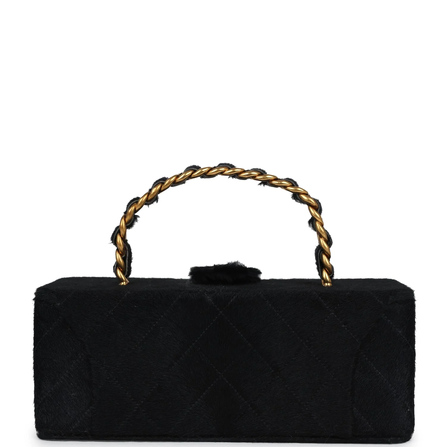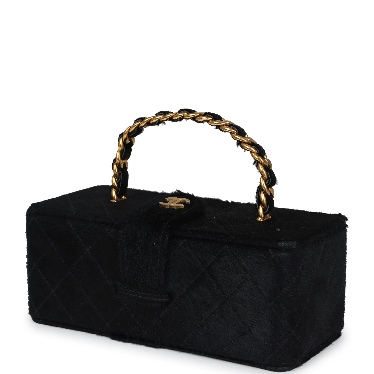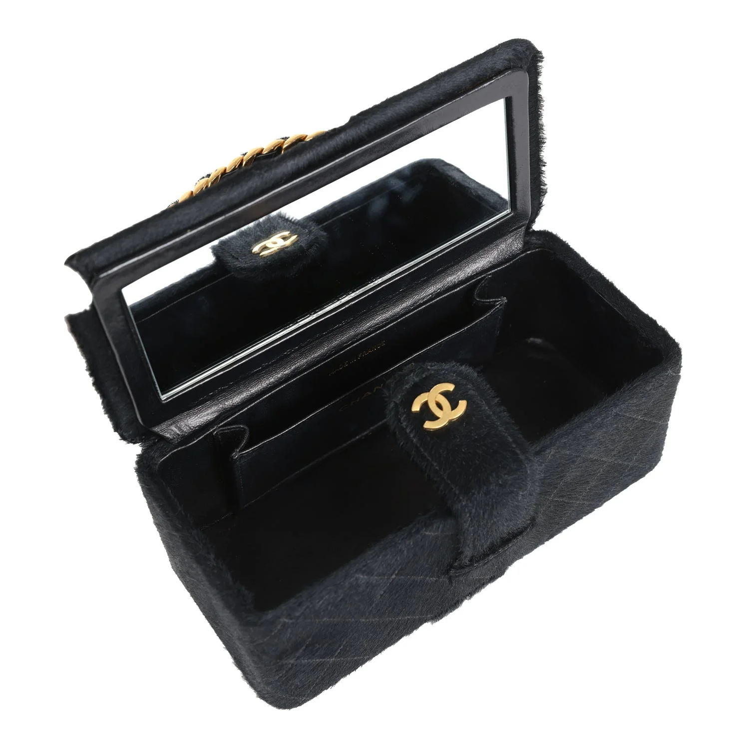 Vintage Chanel Black Pony Hair Vanity Box with Gold Hardware