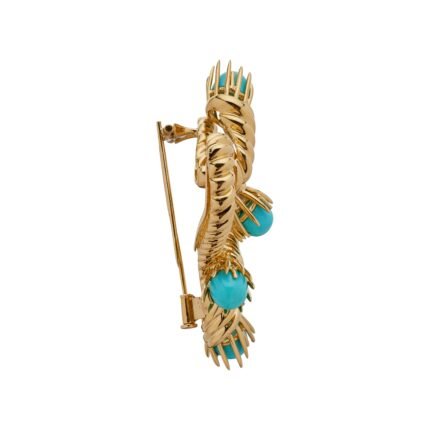 Vintage Tiffany & Co. 18k yellow gold brooch featuring turquoise cabochons in a heart-twist design. Signed by Schlumberger Studios. Includes Sotheby’s pouch. For sale
